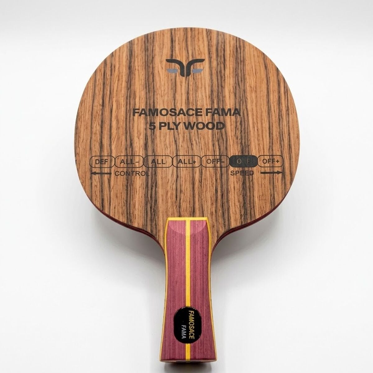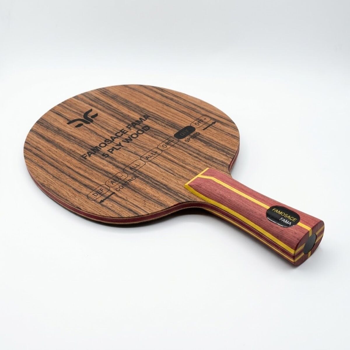 Maksimum dayanıklılık sunan Rosewood yüzeyi sayesinde FAMOSACE FAMA OFF, yıllarca ilk günkü performansını korur. Prestijli tasarımıyla masada tüm bakışları üzerine çeken FAMOSACE FAMA OFF, özellikle masaya yakın ve orta mesafeden yapılan agresif ataklarda rakibi çaresiz bırakan bir hız üretir. Türk markası Famosace tarafından geliştirilen FAMOSACE FAMA OFF, yüksek maliyetli egzotik ağaç kombinasyonlarını en avantajlı fiyatlarla sporculara sunar. FAMOSACE FAMA OFF kullanarak oyununuzdaki keskinliği artırabilir ve hücumda mutlak hakimiyet kurabilirsiniz.