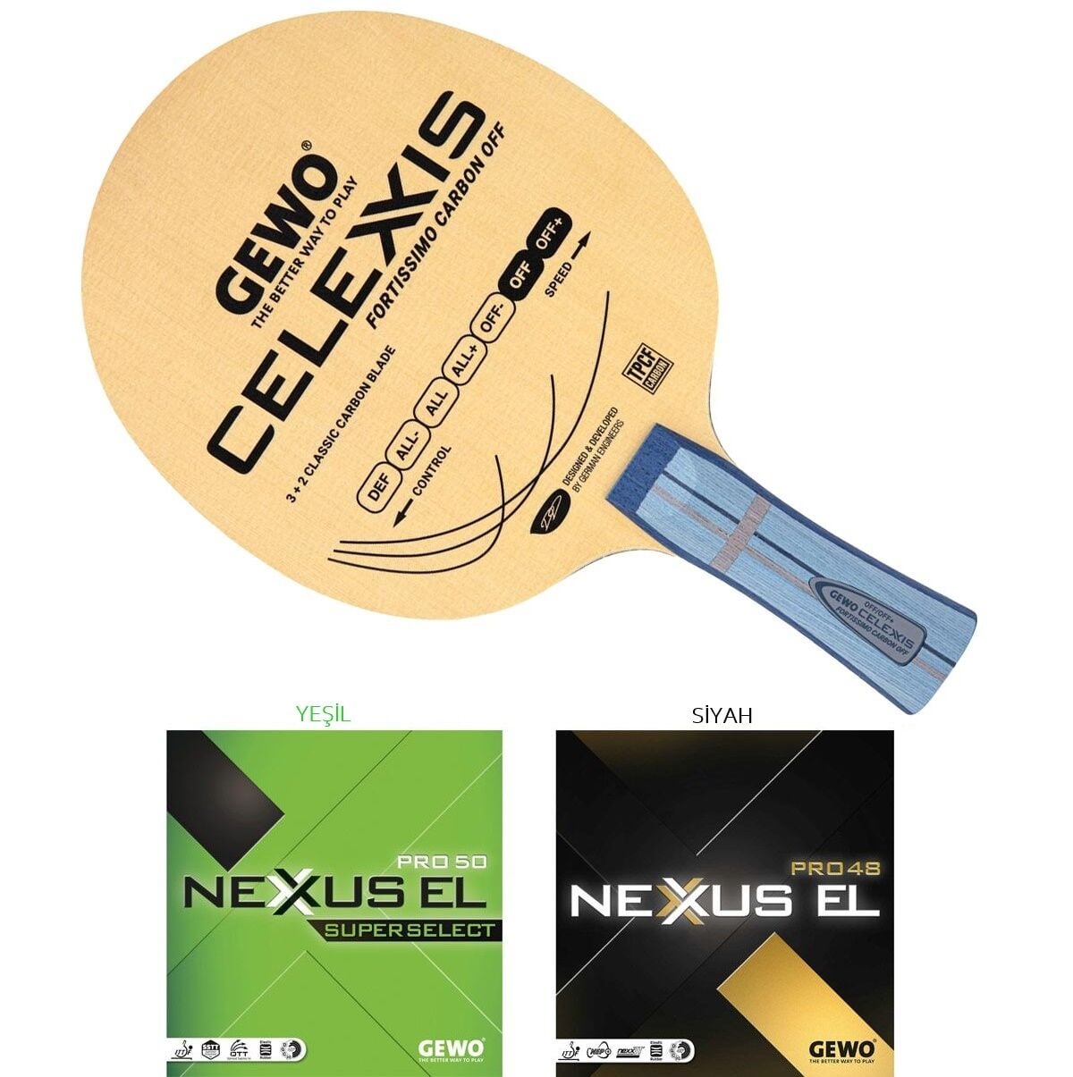 GEWO’nun elit sporcuları için geliştirdiği en hızlı modellerden biri olan Celexxis Fortissimo Carbon, yeni nesil Nexxus SuperSelect serisiyle buluştu. Bu kombinasyon; Hinoki ağacının asil yumuşaklığını, TPCF karbonun patlayıcı hızıyla birleştirerek masada sınır tanımayan bir hücum performansı sunar.