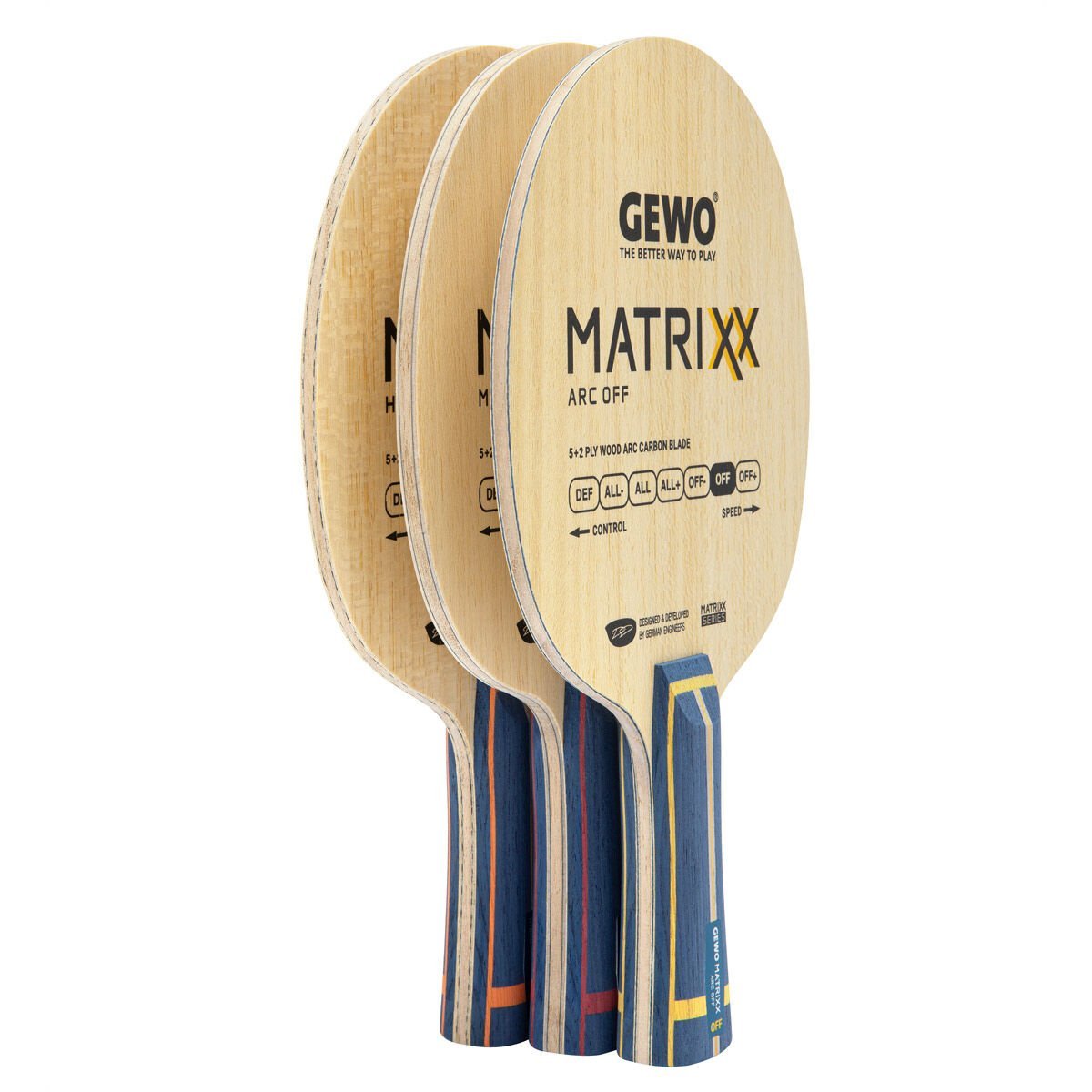 Elyaf takviyeli bir tahta için hassas ve nispeten yumuşak dokunuşuyla GEWO Matrixx ARC OFF, yalnızca yüksek hıza değil aynı zamanda maksimum değişkenliğe de değer veren oyuncular için gerçek bir mücevherdir. Bağlamada kullanılan özel olarak uygulanan reaktif reçine ile birleştirilen hassas bir şekilde koordine edilmiş ahşap kaplamalar, tüm potansiyellerini ortaya çıkarır ve tüm modern hücum stratejileri için harika bir oyun hissi yaratır. Hız ve dokunuşun mükemmel bir kombinasyonu - pasif vuruşlardaki yumuşak his etkileyici bir şekilde varlığını sürdürüyor.
