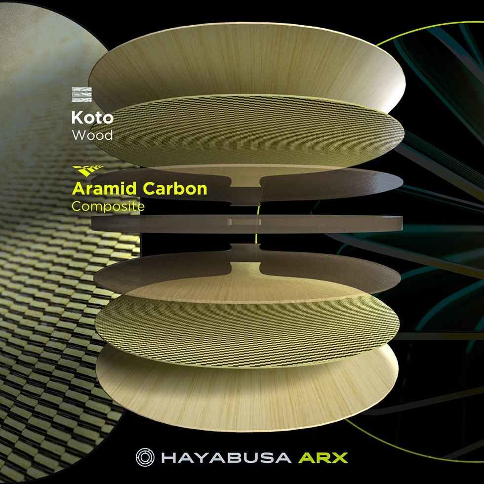 Keskin ve hızlı bir şut oluşturmak ve topa vurmanın titreşimini azaltmak için birinci sınıf Aramid ve yüksek elastikiyetli karbon bir araya getirilmiştir.
