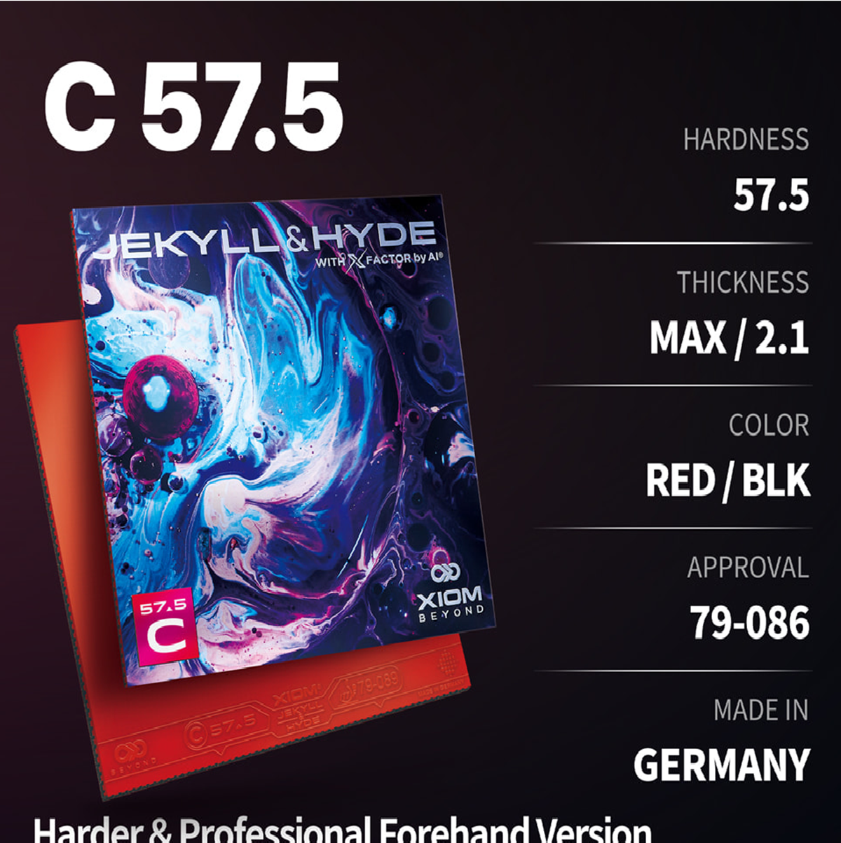 Jekyll & Hyde C57.5.0, serideki en sert lastik. Sonuç olarak, özellikle önden vuruşlarda oldukça doğrudan bir his sağlıyor. Z52.5 ile karşılaştırıldığında biraz daha yavaş ve bize göre biraz daha "uysal", ancak geliştirilmiş spin gelişimiyle etkileyici. Tam potansiyelini geliştirmek için oldukça yüksek bir teknik seviye ve temiz bir vuruş noktası gerektiriyor. Bu nedenle, hibrit lastiklerle deneyim kazanmış ve özellikle spin söz konusu olduğunda bir adım daha ileri gitmek isteyen hırslı ve dinamik topspin oyuncularına bu lastiği öneriyoruz.