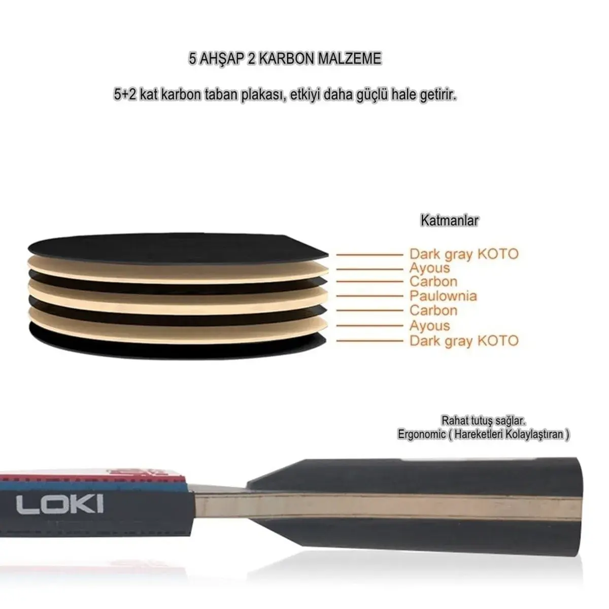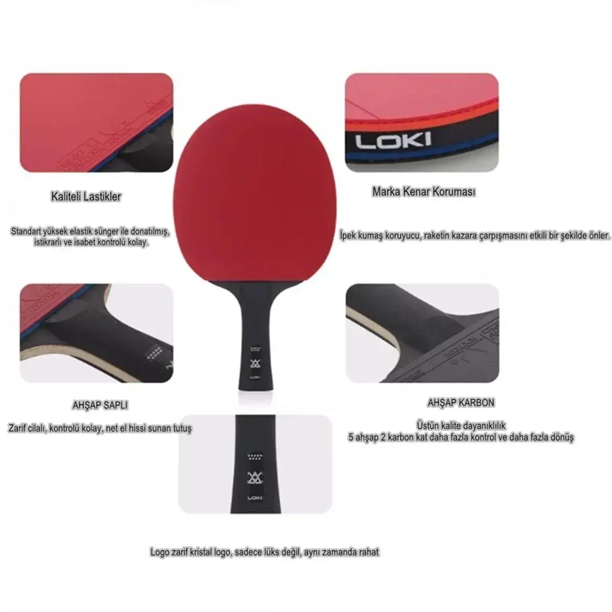 Çift Taraflı LOKI RXTON 5: Raketin hem forehand hem de backhand yüzünde ITTF onaylı, tam yapışkanlı profesyonel RXTON 5 lastikler kullanılmıştır. Bu lastikler, servislerde ve topspinlerde rakiplerinizi çaresiz bırakacak yüksek rotasyonu garanti eder.