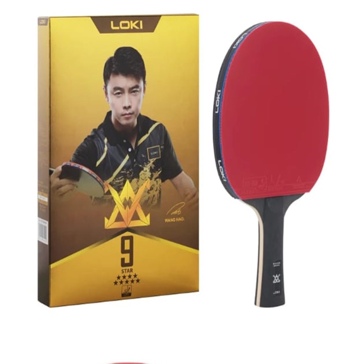 LOKI 9 yıldız tam yapışkan lastik özelliği ve karbon tahtası ile tam profesyonel hazır masa tenisi raketi olarak üretilmiş piyasadaki en iyi raketler arasında yer almaktadır. LOKI 9 yıldız masa tenisi raketi FL (uzun sap) olarak üretilmektedir. Tahta 5+2 katman koto ağacı ve karbon malzemelerden oluşmaktadır. Forehand ve Backhand yüzlerindeki lastiklerde Loki rxton 5 kullanılmıştır. Profesyonel ve gelişim aşamasındaki oyuncular için en ideal hazır rakettir. LOKI 9 yıldızlı raket hız ve rotasyon özelliği sayesinde mükemmel performansa sahiptir. Ve 7 kat karbon tahtası istenilen güç ve hızı sağlamaktadır. Ambalajında 1 adet Loki 9 yıldız raket ve 1 adet raket kılıfı ile gönderilmektedir.
