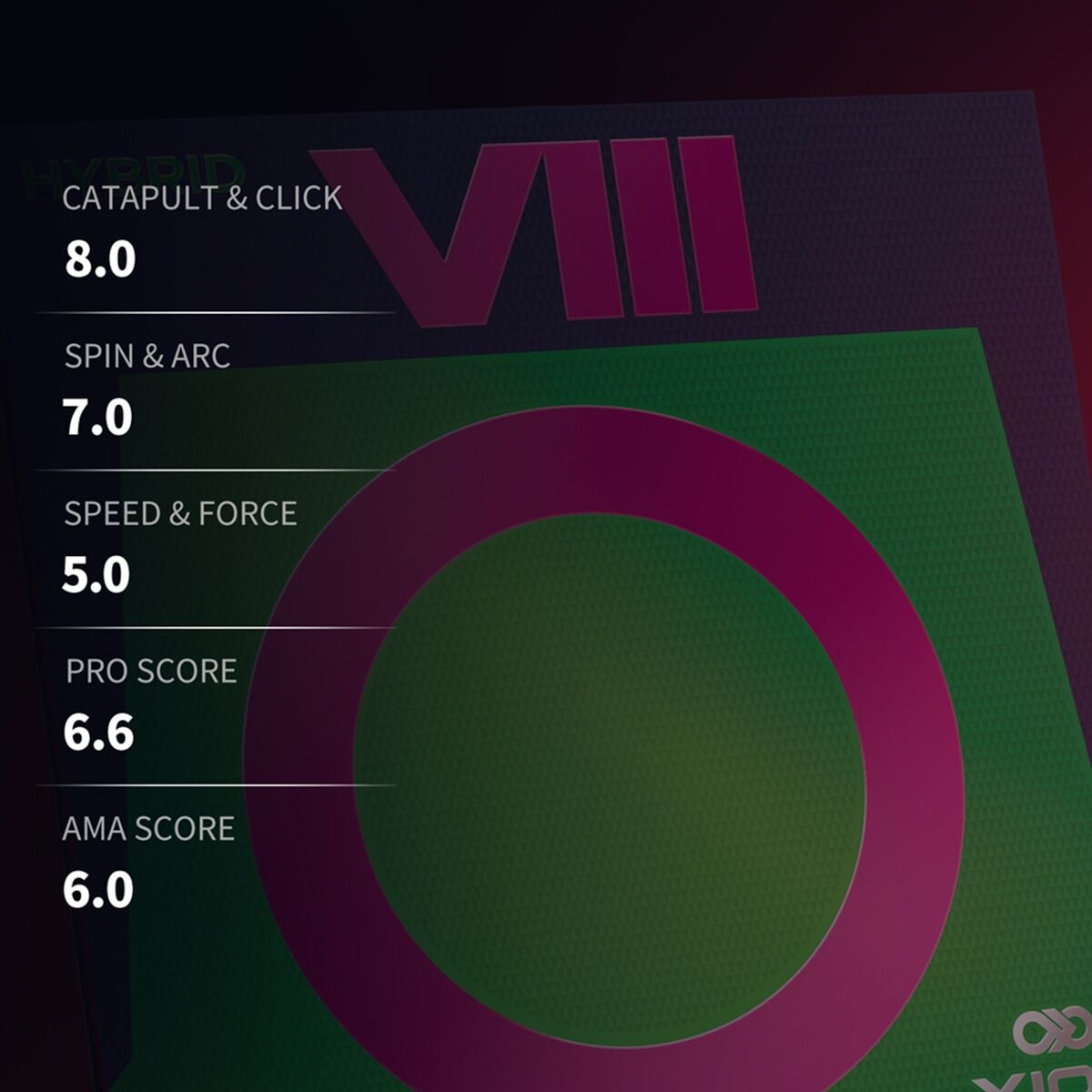 Daha yumuşak sünger, adaptasyonu kolaylaştırır ve lastiğe Avrupa Tensor lastiklerine daha yakın özellikler kazandırır. OMEGA 8 Hybrid, hızlı tepki ve hassas kontrol ile masaya yakın oyunlarda olağanüstü performans sunar.