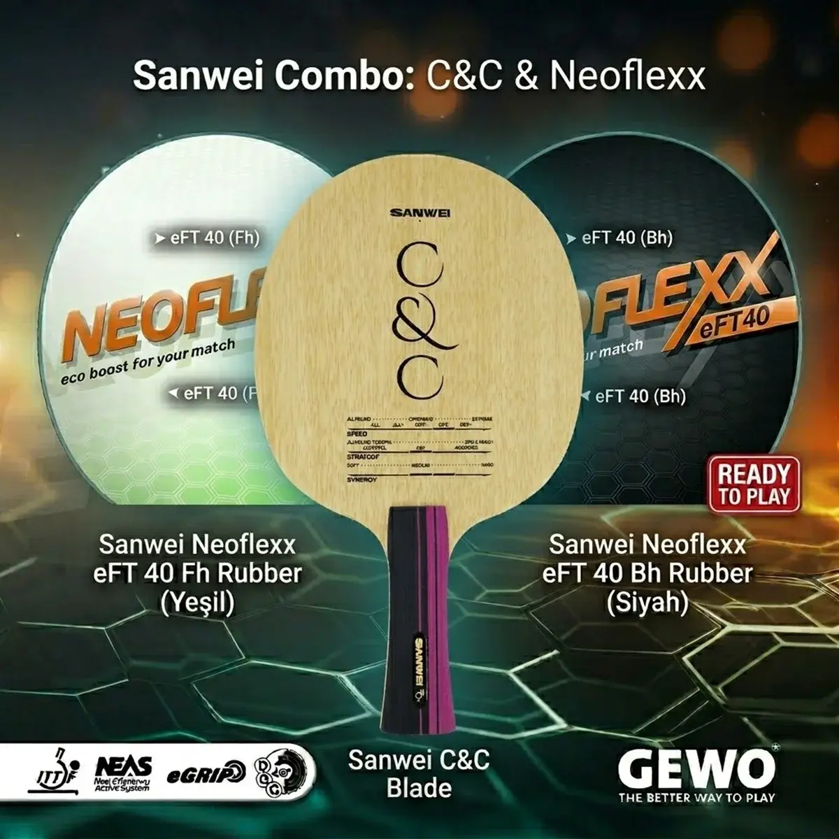 İdeal Geçiş Kombinasyonu: SANWEI CC GEWO NEOFLEXX 40, saf ahşap tahtalardan karbon teknolojisine geçişte dünya çapında en çok önerilen profesyonel reçetelerden biridir.
