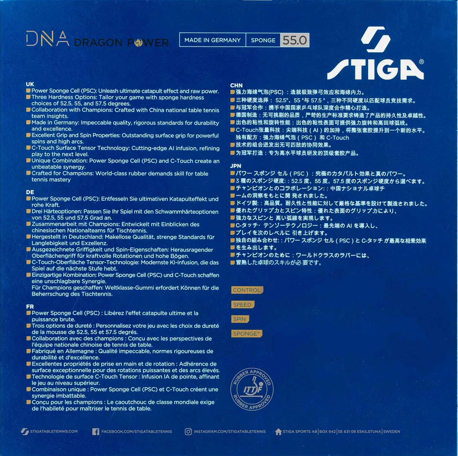 Şampiyonların Katkısı: Çin Milli Takımı’nın profesyonel geri bildirimleri bu eşsiz STİGA DNA Dragon Power 55 yapısında hayat bulmuştur.